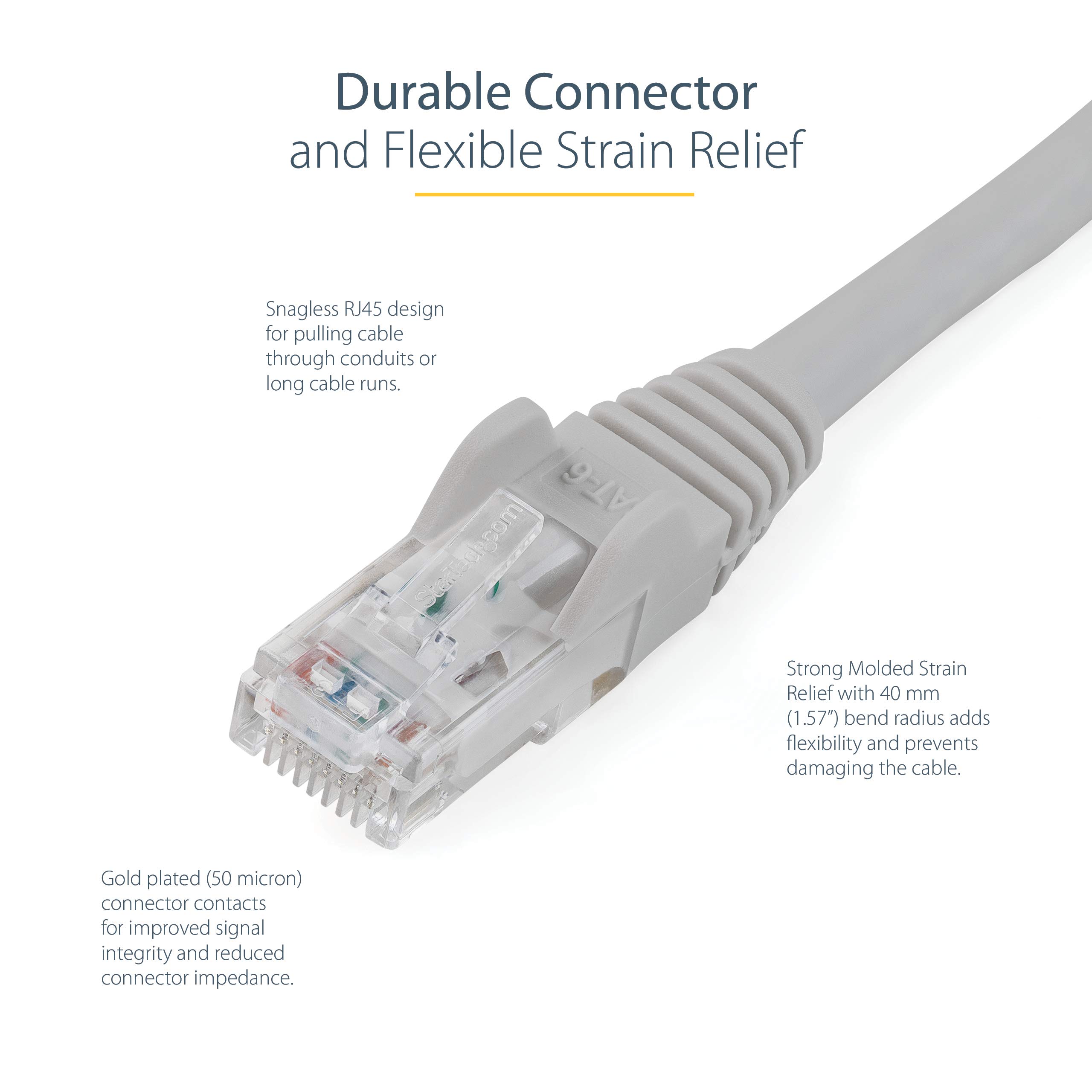 StarTech 10m CAT6 Ethernet Cable - Grey CAT 6 Gigabit Ethernet Wire -250Mhz 100W PoE RJ45 UTP Network Patch Cord Snagless with Strain Relief (N6PATC10MGR)